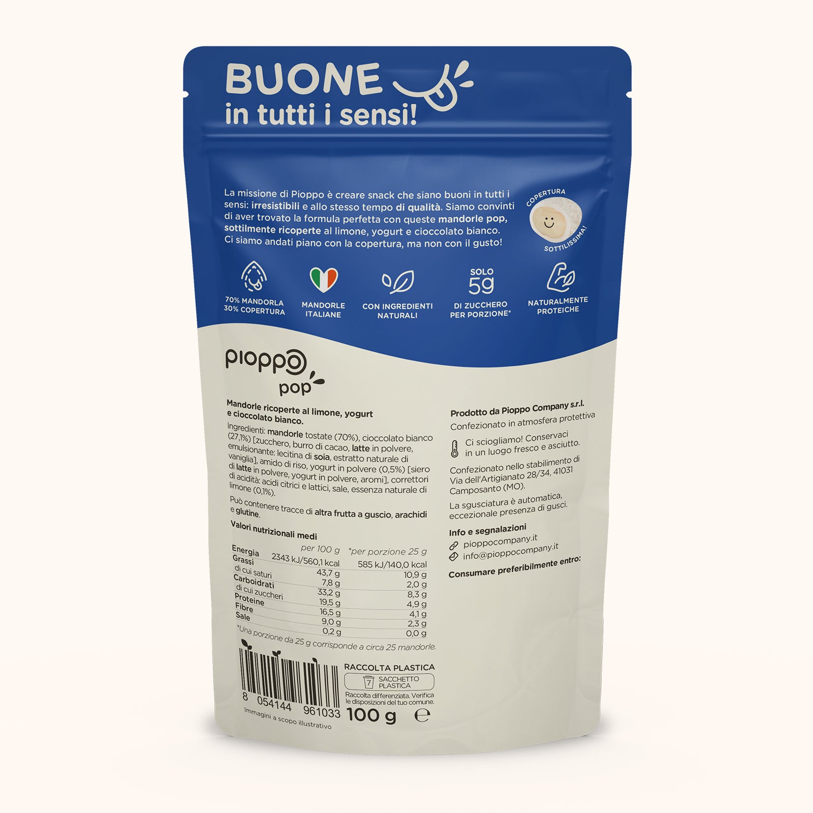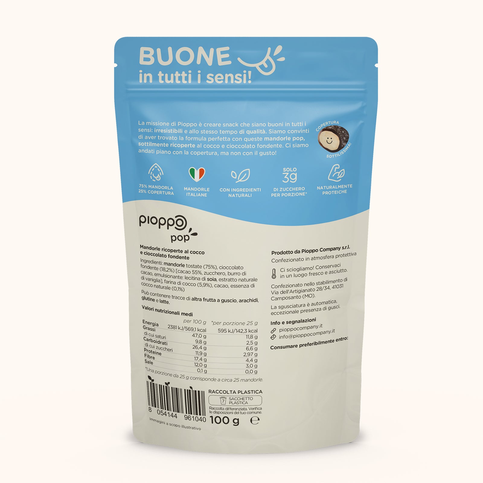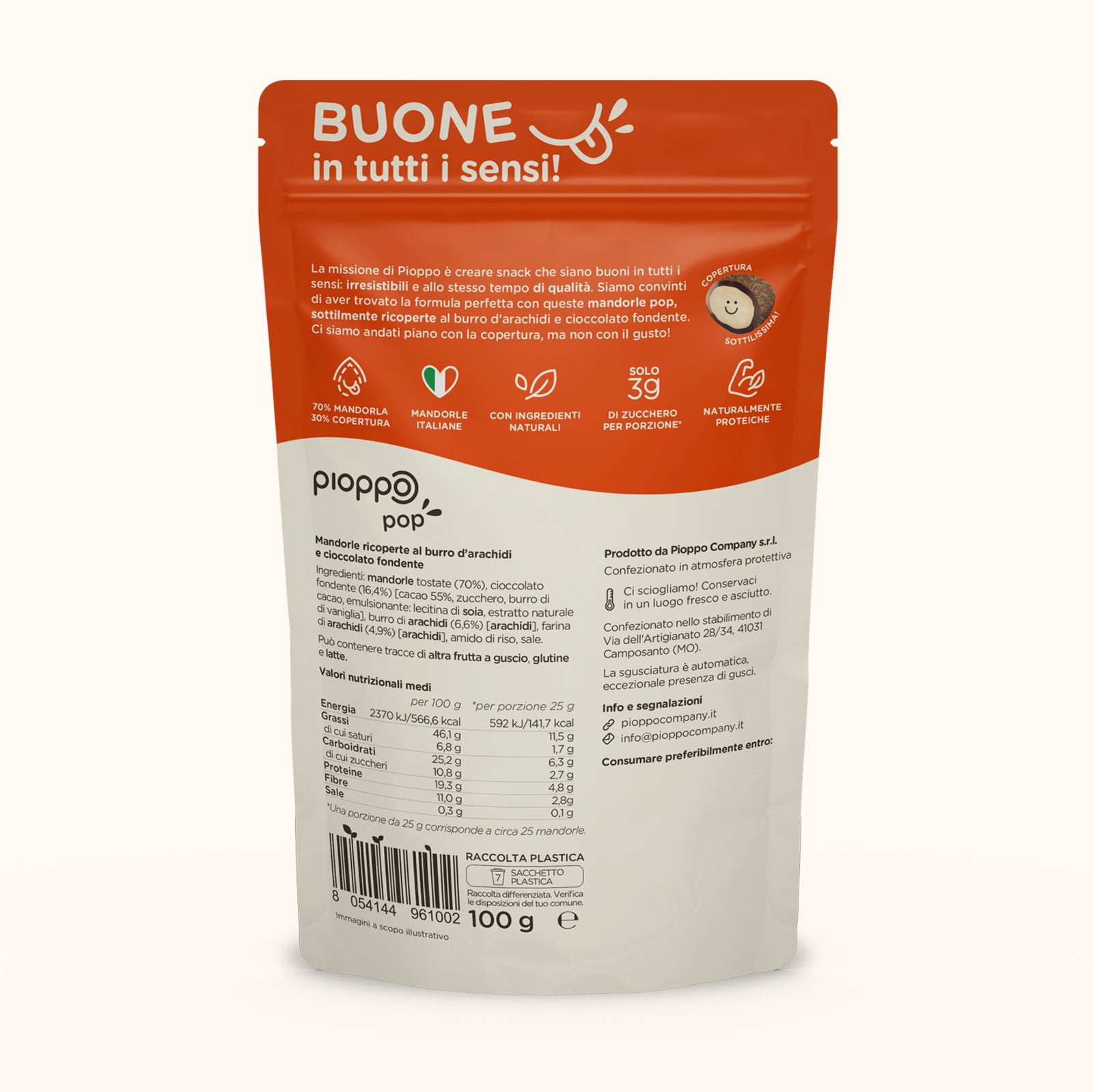 Le nostre mandorle Pop sono buone in tutti i sensi. La copertura ULTRA sottile regala un nuovo modo di gustare la frutta secca: irresistibile, ma senza sensi di colpa. L' equilibrio perfetto tra leggerezza e piacere.